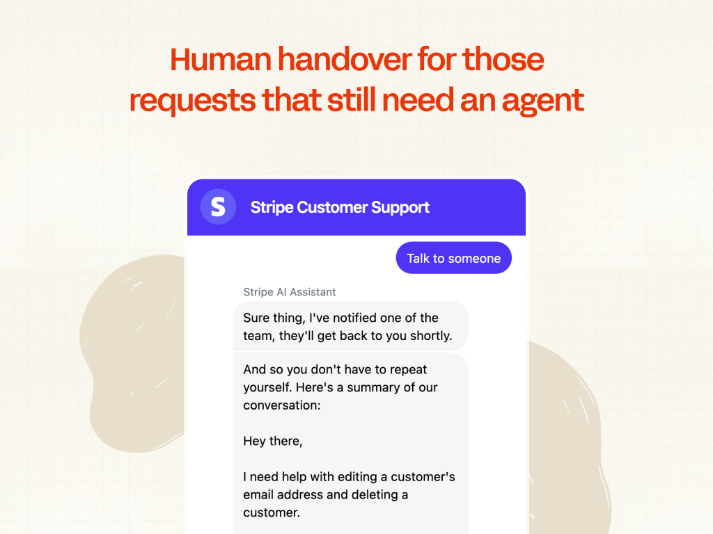 - Automated Actions and Tasks: Define AI tasks (all in natural language), such as refunds, address changes, upgrades and more.