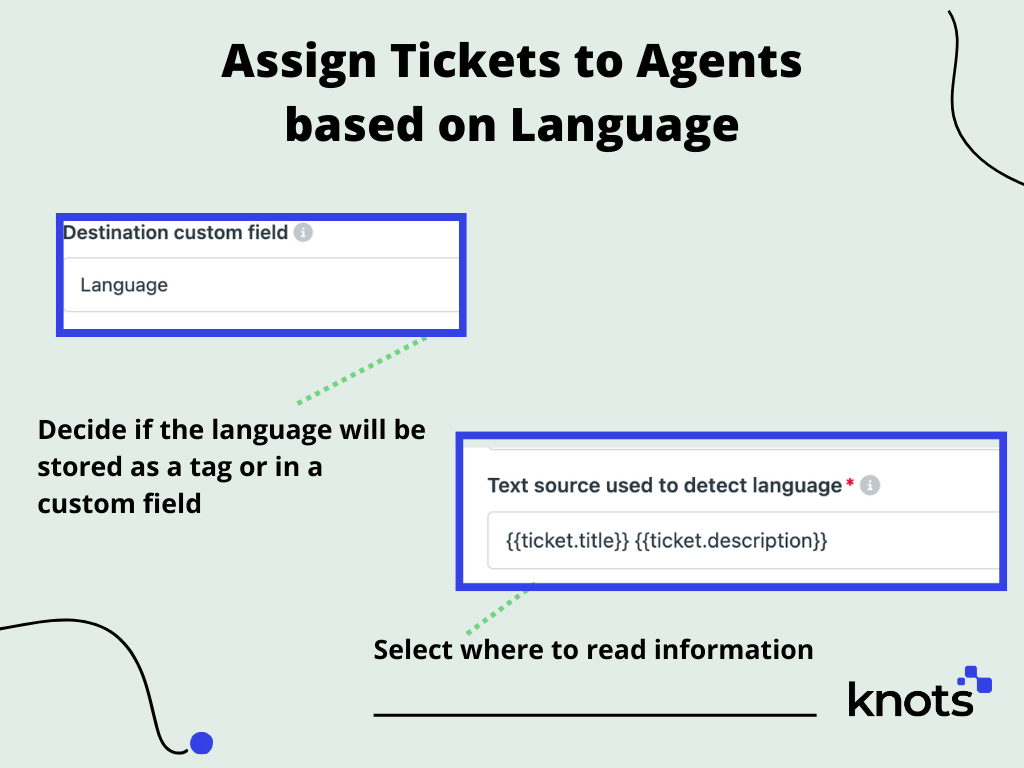 The Knots Ticket Language Detection app quickly identifies the language of each incoming ticket before any agent opens it. Tag or save the language in a field for routing and reporting.